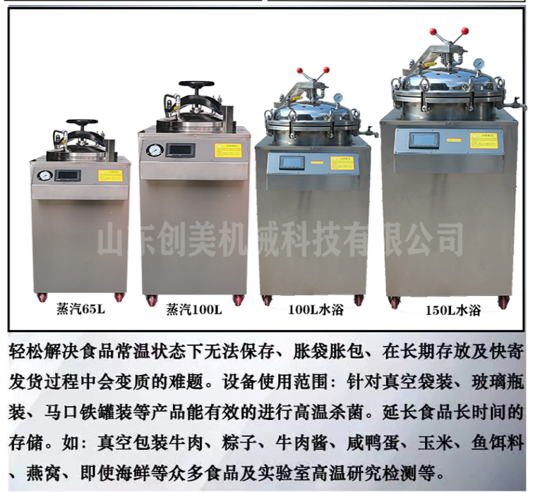 小型殺菌鍋:特經(jīng)過(guò)殺菌后,降溫冷卻時(shí),停止供應(yīng)蒸汽,將冷卻水壓入噴水管。由于鍋內(nèi)溫度下降,蒸汽冷凝,而使鍋內(nèi)力降低采用壓縮空氣的壓力來(lái)補(bǔ)償。
