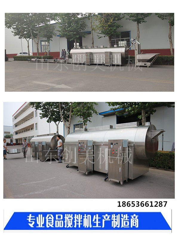 山東創(chuàng)美機械流水線設(shè)備可根據(jù)您需要炒制的物料選擇鍋流水線長度,山東創(chuàng)收美機械有現(xiàn)貨成熟流水線炒貨設(shè)備以及配套設(shè)備,包括提升機、冷卻床、振動過濾風選機等。詳情可咨詢客服18653661287,、保護熱量不能向外散放,熱效率可達95%以上,比傳統(tǒng)的電加熱烘炒設(shè)備節(jié)電45%以上。