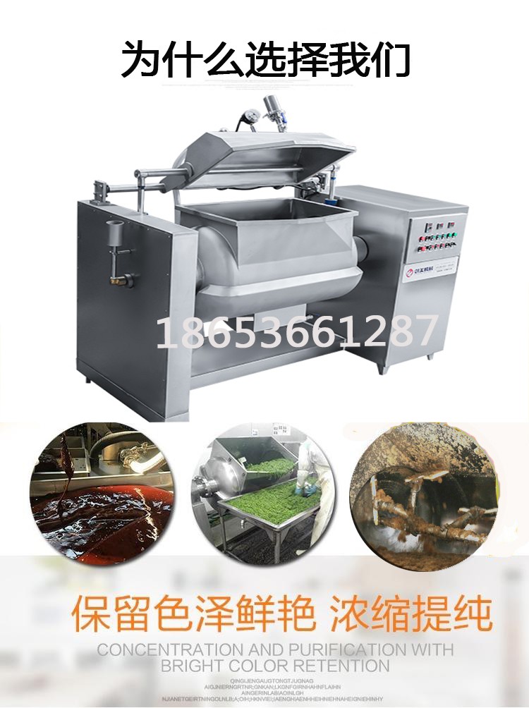 真空橫軸攪拌炒鍋作用:真空橫軸攪拌炒鍋作用::適用于豆沙、果蓉、醬類、肉松、各種餡料、餌料等高粘度食品、中藥的攪拌預意、配制、濃縮等。