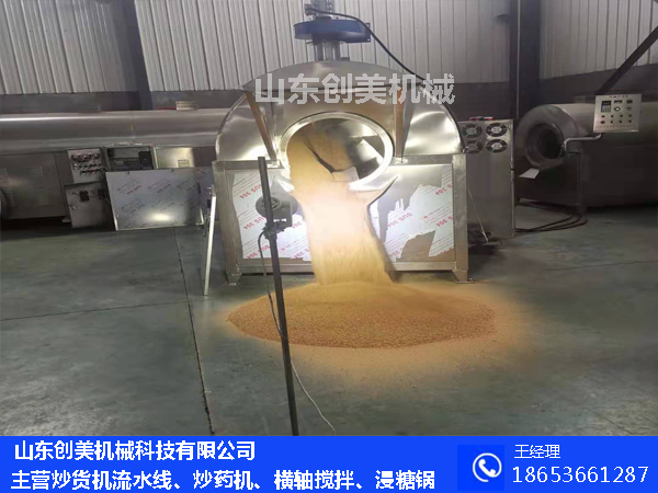 電磁炒貨機生產(chǎn)廠家山東創(chuàng)美機械吸收借鑒國際先進技術(shù),結(jié)合眾多食品廠家的專家建議,自主研發(fā)的一種新型炒料機,本鍋體攪拌部分可根據(jù)客戶要求訂制,保證了鍋內(nèi)的平整光滑,采用、電磁、液化氣、天然氣等加熱方式,自重式,使鍋體與攪拌葉片緊密接觸,使物料攪拌均勻,不粘鍋,動力采用日本無機調(diào)速器,使鍋內(nèi)攪拌無死角,使用先進的傳動與密封接夠,使傳動···